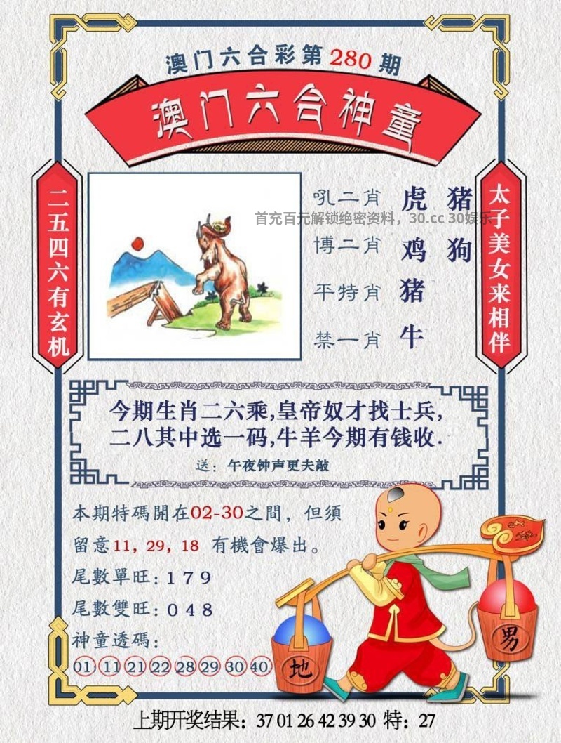 280期:【绝杀一头】♫【1头】♥开:鼠42
